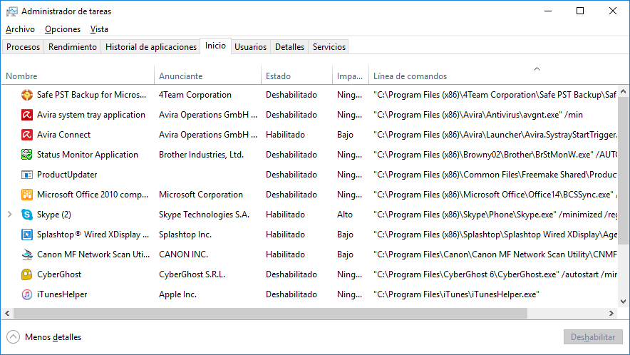 - Aparecerá la ventana del Administrador de tareas, pulsa en la pestaña "Inicio".
