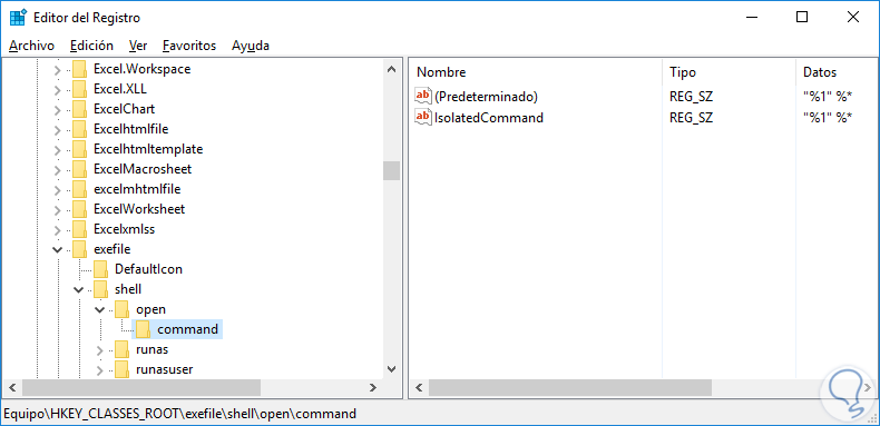 - Luego buscaras las siguientes carpetas "Exefile", "Sello", "Open" y por ultimo "Command"