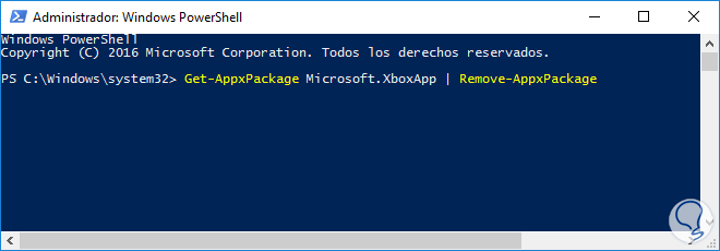 - A continuación, debes introducir el comando que te voy a indicar a continuación: Get-AppxPackage Microsoft.XboxApp | Remove-AppxPackage.