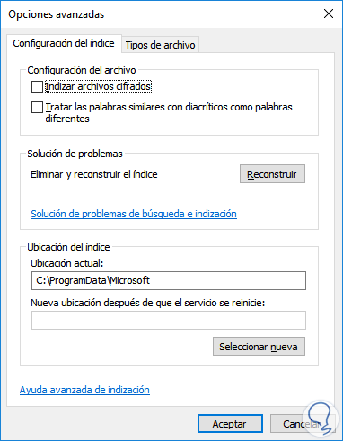Cómo activar o desactivar indexar archivos cifrados o tratar diacríticos en Windows 10
