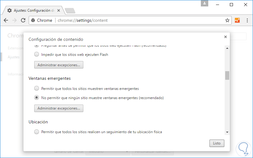 Otra cosa es deshabilitar los popup en Chrome. Para ello haz esto: