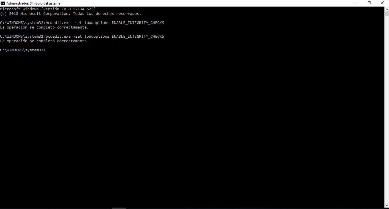Bcdedit.exe -set loadoptions ENABLE_INTEGRITY_CHECKS