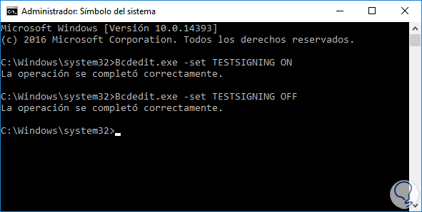 • Paso 3. Ingresa el siguiente comando y presiona "Enter": bcdedit.exe -set TESTSIGNING OFF.