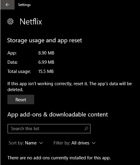 Si te sigue saltando ese error en Netflix U7353, siguiendo los dos anteriores, lo mejor va a ser que pongas de nuevo restableciendo por defecto el programa de Netflix con sus configuraciones por defecto. Al restablecer la aplicación Netflix y volver a la configuración de fábrica puede resolverte todo esto sin problemas.