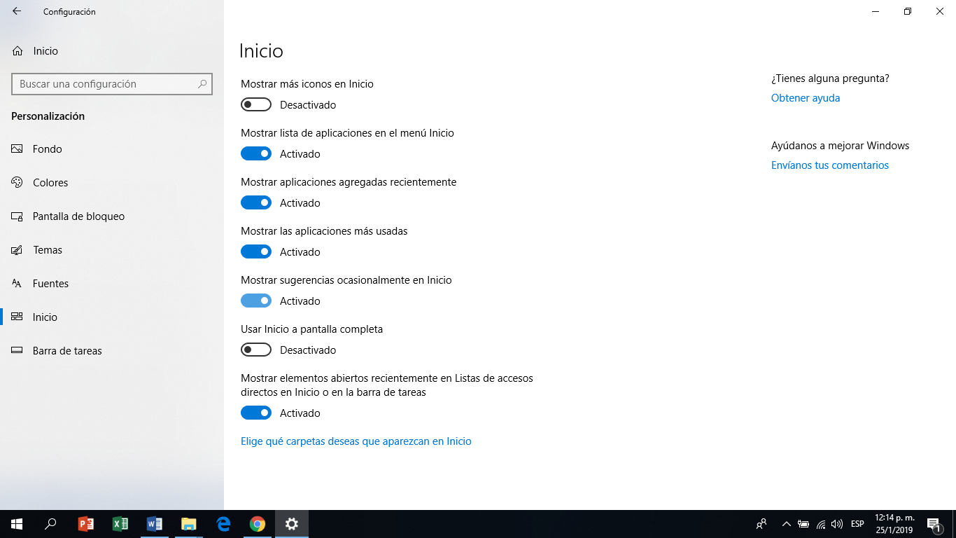 - Se desplegará un cuadro, allí debes desmarcar la opción que dice “Mostrar/ver sugerencias ocasionalmente en Inicio”.