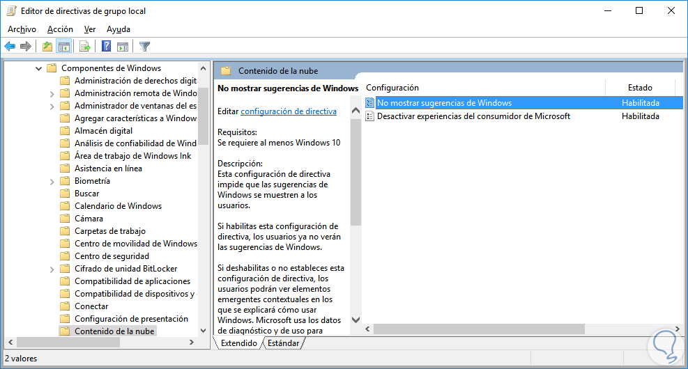 - Debes “Deshabilitar” ambas opciones para que no aparezcan los anuncios en tu Windows 10.