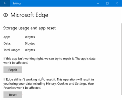 Prueba primero Reparar y si no te lo repara pulsa en Resetear para dejarlo como de fábrica. Como ves asi lo tienes fácil, si quieres la forma de hacer esto más avanzada sigue los pasos que te puso John del enlace del tutorial pero eso ya es para profesionales IT o avanzados, o para hacerlo en versiones anteriores a Windows 10 Fall Creators Update porque no tendrán esta opción para resetear Microsoft Edge: