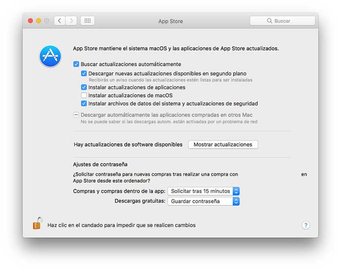 3. Por último debes desactivar la opción “Buscar actualizaciones automáticamente”