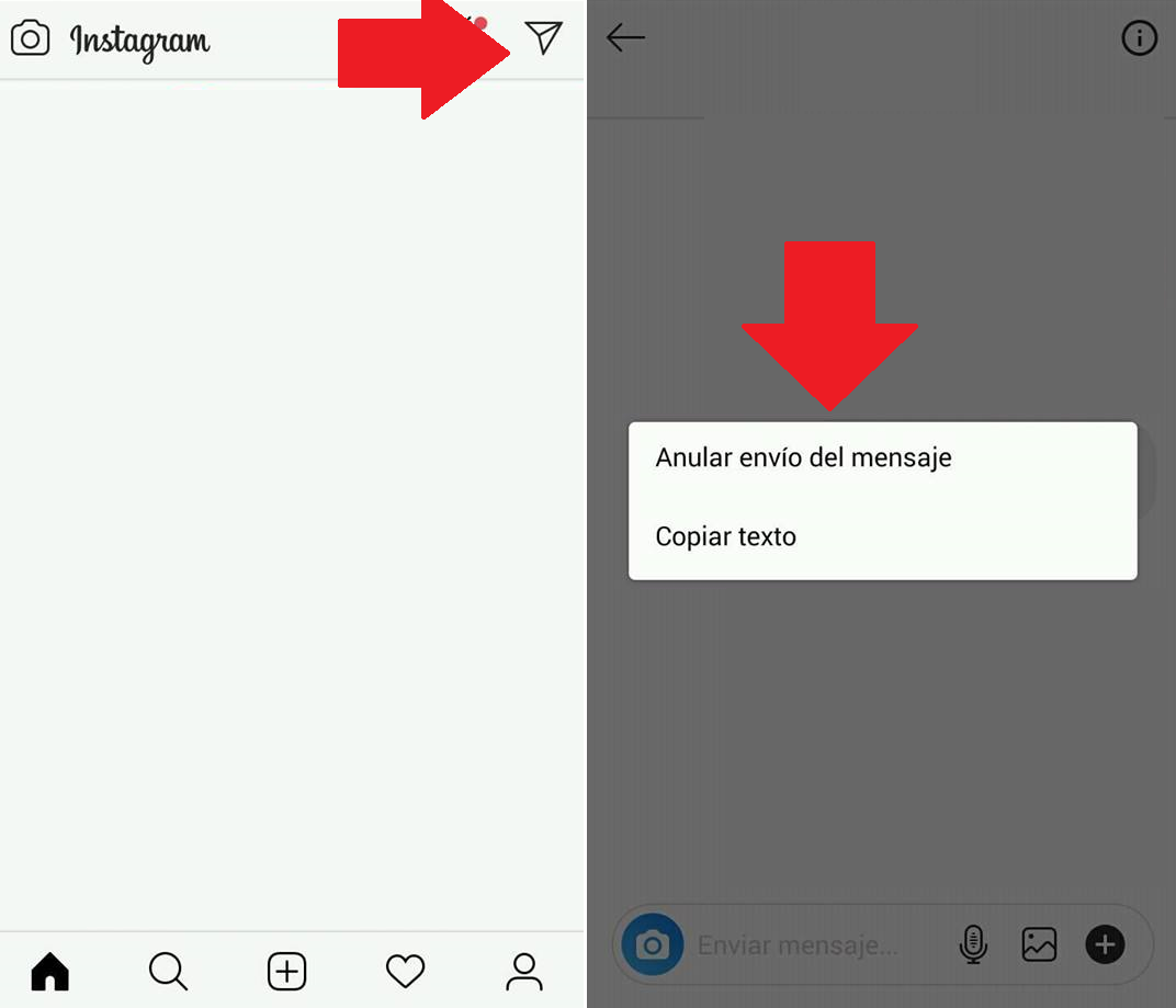 Cómo borrar y anular mensaje directo enviado en Instagram