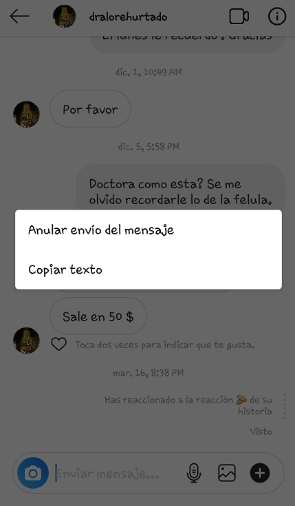 Como digo, es posible eliminar mensajes Instagram de hace poco tiempo como 3 minutos como si me dices que quieres borrar mensaje instagram de hace 1 mes, pero es importante decir que no se pudo borrar mensaje que se compartió a través de un mensaje directo. Parece que solo se puede borrar texto pero no links.