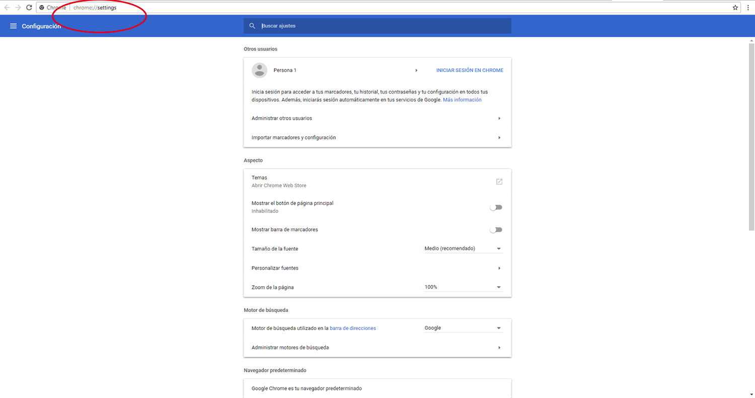 En este vídeo puedes ver como realizarlo. Hay otra forma de acceder a la configuración de Chrome en lugar de introducir la dirección en la barra, que es la siguiente: