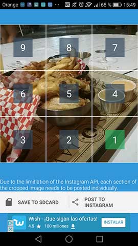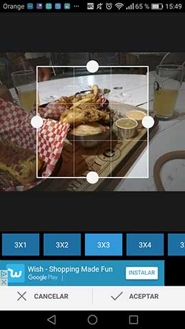 Colocar y ajustar foto para subir a Instagram dentro de la aplicación: