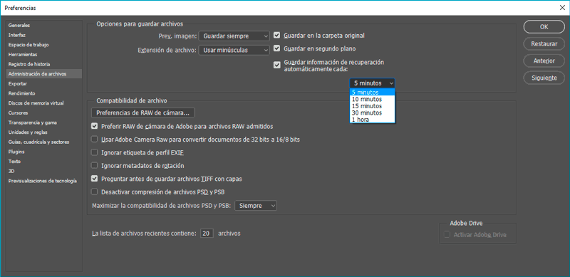 Cómo autorecuperar archivos en Photoshop CC 2017?