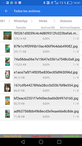 7- Dentro de esta carpeta quedarán guardadas todas las actualizaciones de Estado que tus contactos hayan hecho.