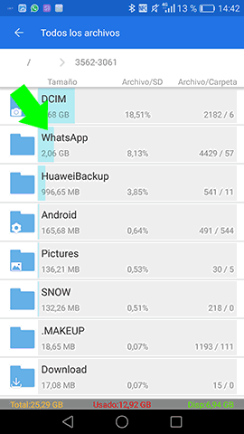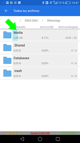 4- Dentro de esta carpeta entra en la carpeta de WhatsApp