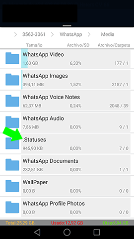 6- Dentro de esta carpeta encontrarás una carpeta llamada Statuses en la mayoría de los dispositivos Android.