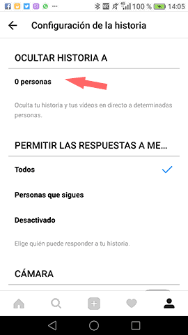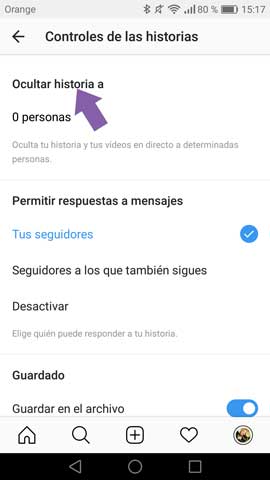 Por último, selecciona “Ocultar historia a” y elige los contactos que quieras