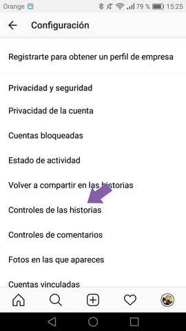 - Ahora tienes que seleccionar “Controles de las historias”