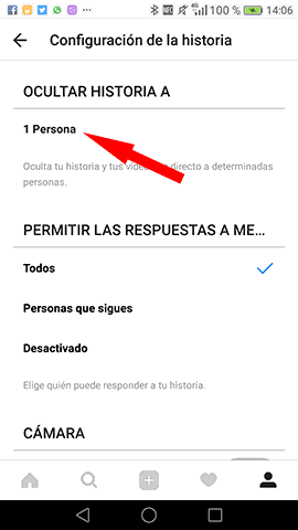 En el caso de que quieras volver a mostrar tus historias para esta persona, basta con que repitas estos mismos pasos y desmarques esta acción.