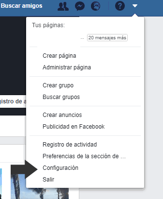 PRIMERO: Entra en Facebook y una vez aquí entra en Configuración que está en la parte superior derecha de la pantalla.