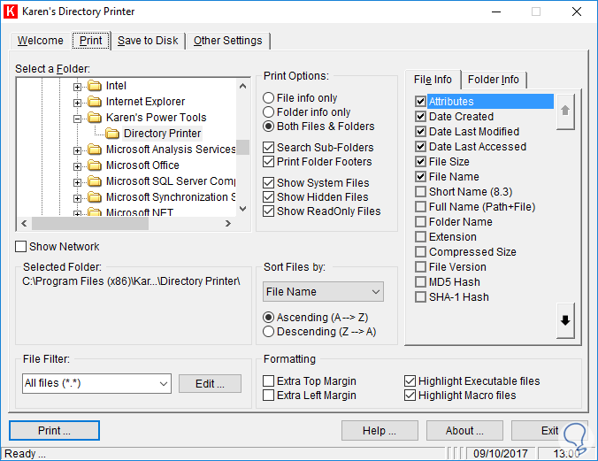 Cómo imprimir contenido directorio carpetas Windows 10