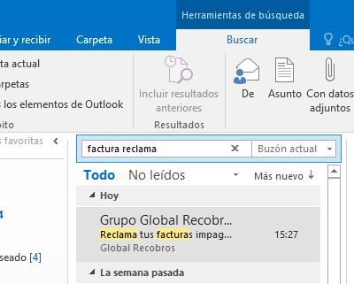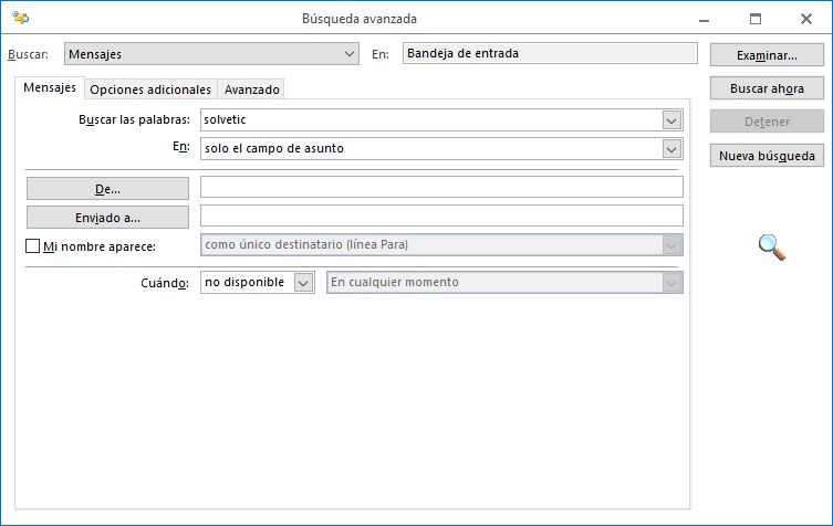 Cómo usar búsqueda avanzada Outlook 2016