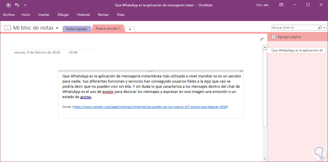 Deshabilitar enlace al pegar texto de pagina web en OneNote