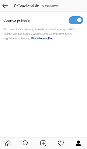 3) En el apartado cuenta, desliza la pestaña a la derecha para hacer tu cuenta privada.