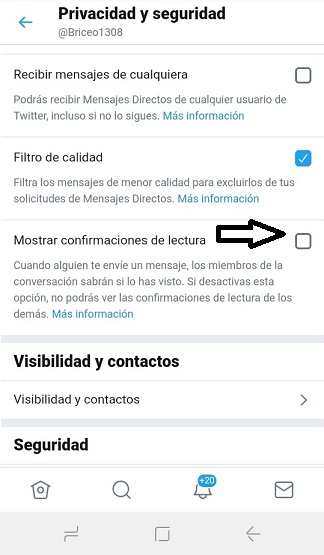 De esta manera cuando envíes o te envíen un DM no se mostrara la señal de confirmación de lectura.