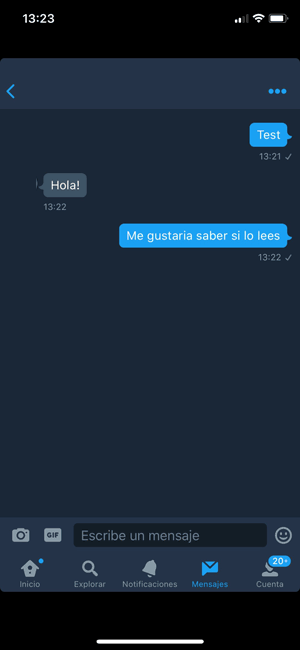 Notificación lectura mensaje enviado Twitter