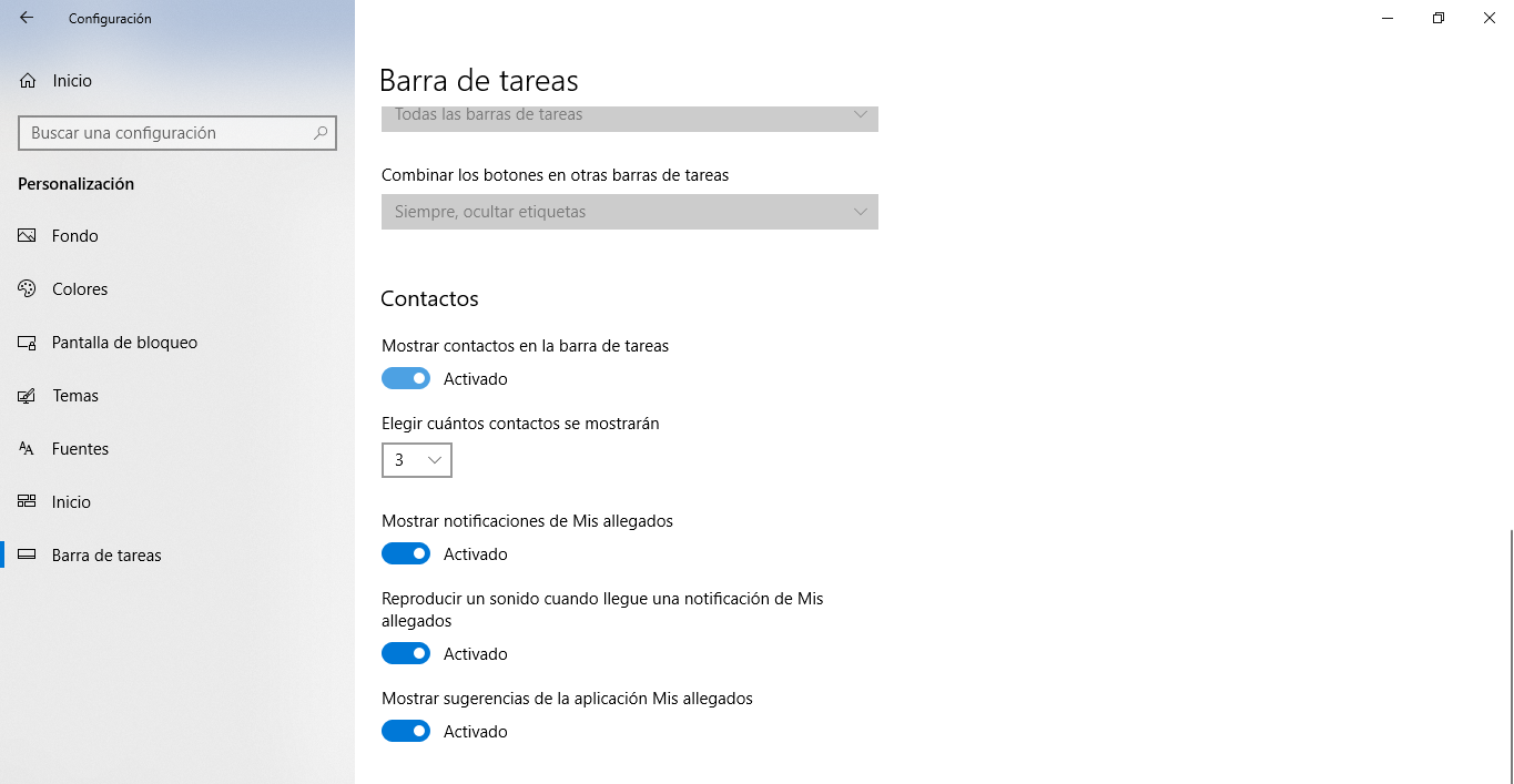 Ahora bien, al acceder a esta opción vamos a encontrarnos con otras 3 opciones con las que podemos optar para poder personalizar cualquier configuración de los contactos que se encuentran ubicados en la barra de tareas de Windows y son las siguientes: