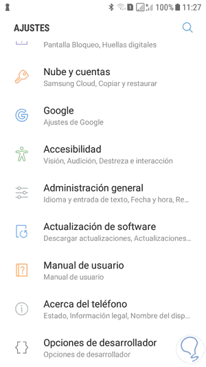 - Como podrás notar, ahora se encontrara disponible una alternativa llamada “Opciones de desarrollador” a la cual debes acceder.