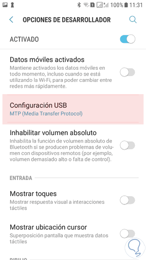 Una vez que hayas hecho esto, debes proceder a habilitar la opción de “Media Transfer Protocol” o como comúnmente se le conoce “MTP”, esto lo puedes hacer de la siguiente manera: