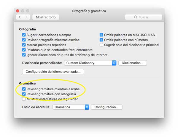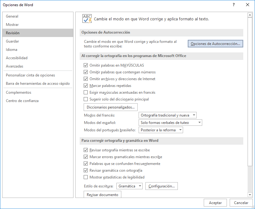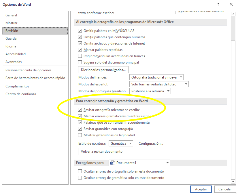 En este caso tenemos que marcar la opción de “Ortografía y gramática”