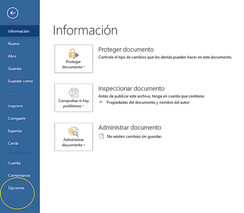 Lo primero que debes hacer es entrar en Microsoft Word y seleccionar en el menú lateral la pestaña de “Opciones”.