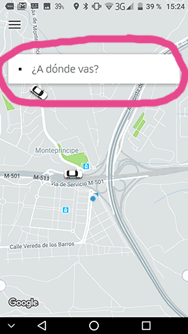 3) En el mapa de Uber selecciona tu ubicación actual.
