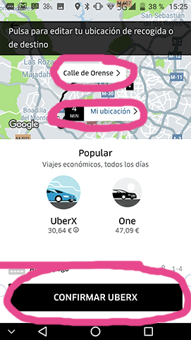 5) Si el controlador disponible es con el que quieres viajar, acepta e introduce el destino al que quieres llegar.