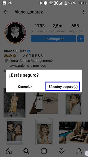 Aún así piensa si estas seguro de querer desbloquear a esa persona en Instagram y lo que pasa al desbloquearla: