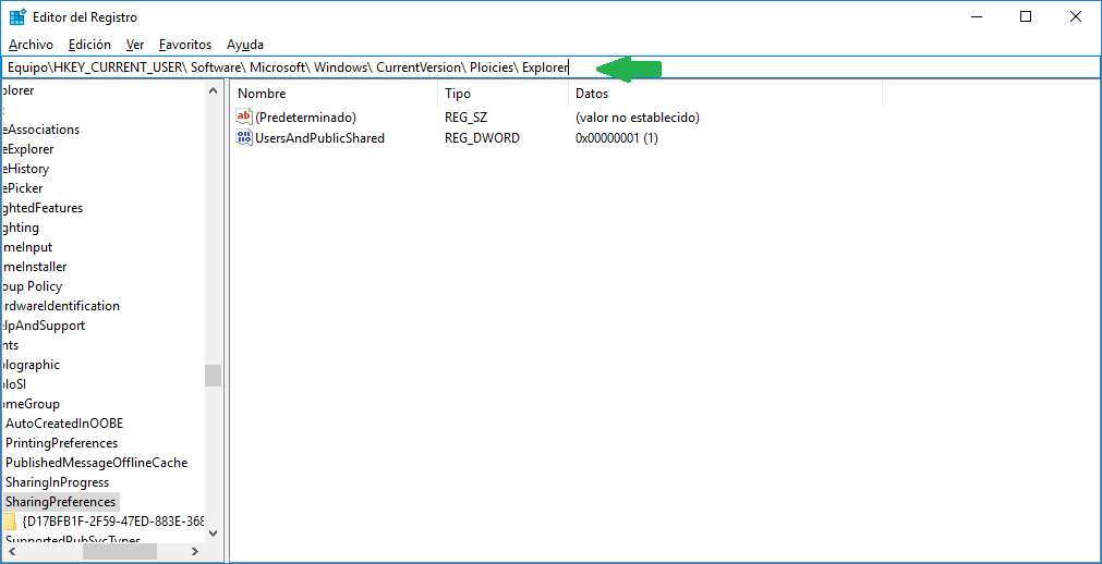Si deseas deshabilitarla de nuevo, solo tienes que realizar el mismo procedimiento que te di, pero cuando vayas a colocar el número de la “Información del valor” deberás colocar el 1.