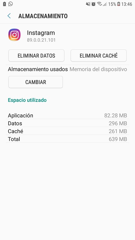 - Una vez aquí, vas a proceder a buscar la de Instagram y debes pulsar allí, buscando la casilla que dice “Espacio de almacenamiento”