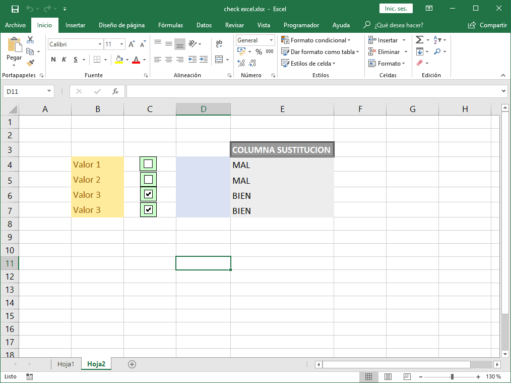 7. Vemos que se oculta la columna de verdadero y falso pero sigue funcionando nuestro checklist con nuestro texto personalizado.