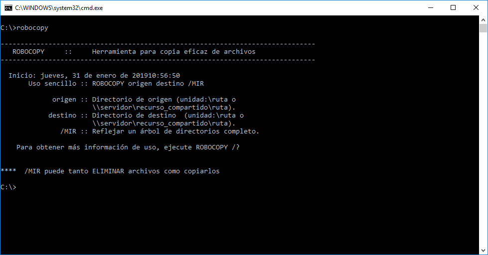 Cómo usar comando Robocopy Windows 10