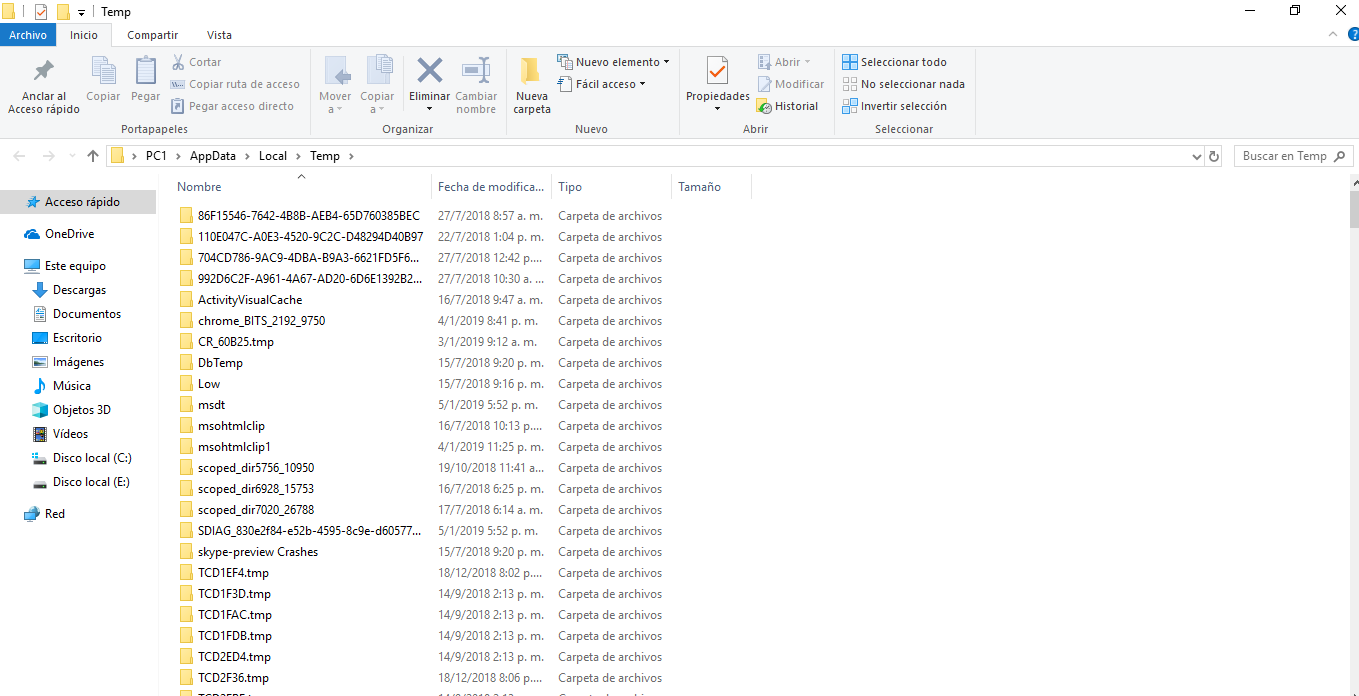 Cómo borrar Archivos temporales de Windows 10 desde la carpeta: