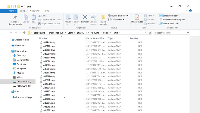 - Con esto puedes acceder de manera directa a la carpeta de archivos temporales.