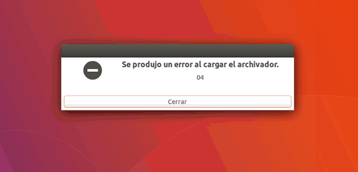 Hola, me salta este error en Ubuntu, literalmente dice: se produjo un error al cargar el archivador. 04