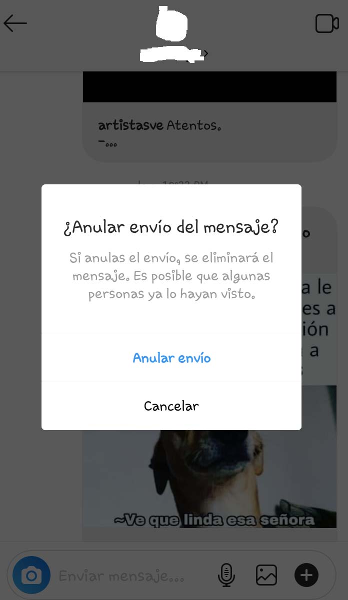 SEGUNDO: Cuando lo dejes pulsado, aparecerá en la pantalla una ventana emergente con el siguiente mensaje. Pulsa en "Anular el envío del mensaje".