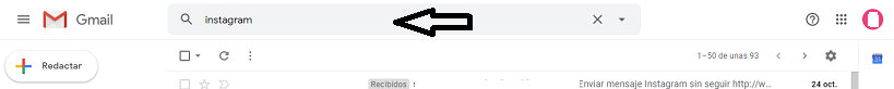 De todas formas es importante que puedas tener acceso al correo que se encuentra asociado a tu cuenta de Instagram. Si tienes acceso, entonces abre tu correo en la bandeja de entrada y en el buscador deberás colocar “Instagram”. Esto te servirá para filtrar un poco los mensajes, si tienes muchos correos allí (cosa que nos pasa a menudo jejejej)