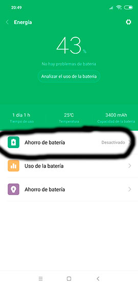 Una vez dentro, pulsa en la opción "Ahorro de batería"