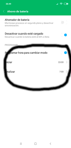 Por último, tienes que activar la pestaña de ahorrador de batería y establecer las horas a las que quieres y se desactive el ahorro de batería en tu Xiaomi.