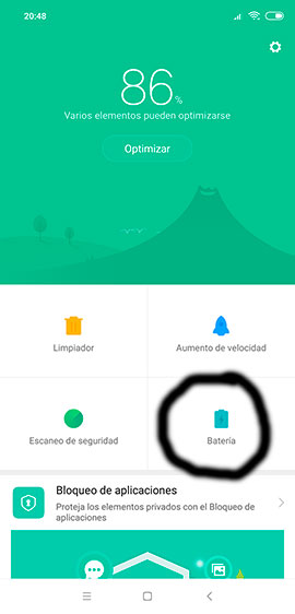 Una vez dentro de "Seguridad" , pulsa en "Batería"